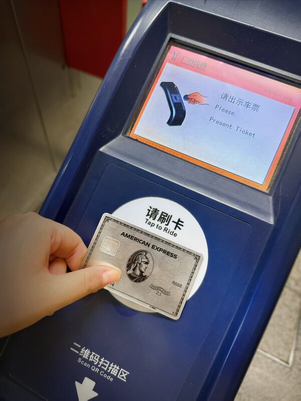 自2025年10月12日起,消费者将能使用符合条件的美国运通卡[1]或已绑定符合条件的美国运通卡的移动设备,在广州地铁车站有美国运通标识的闸机上轻触拍卡标识就能轻松出入站。