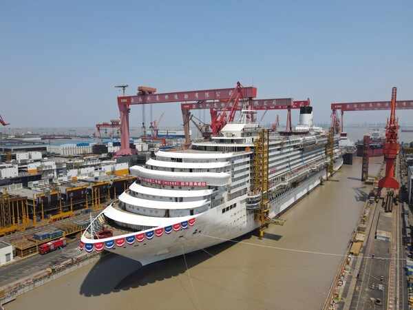第二艘国产大型邮轮爱达·花城号完成坞内起浮