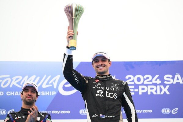 圣保罗2024年12月8日 /美通社/ — 2024/25赛季 ABB 国际汽联FE电动方程式世界锦标赛在巴西圣保罗的揭幕战在12月7日拉开大幕,捷豹车队的米奇•埃文斯驾驶着全新的GEN3 Evo赛车获得了首站的胜利。成为有史以来最后一位出发,第一位冲线的车手。本场比赛中共有111次超车,五位车手交替获得领先并且出现了多次戏剧性时刻,其中包括两次红旗。