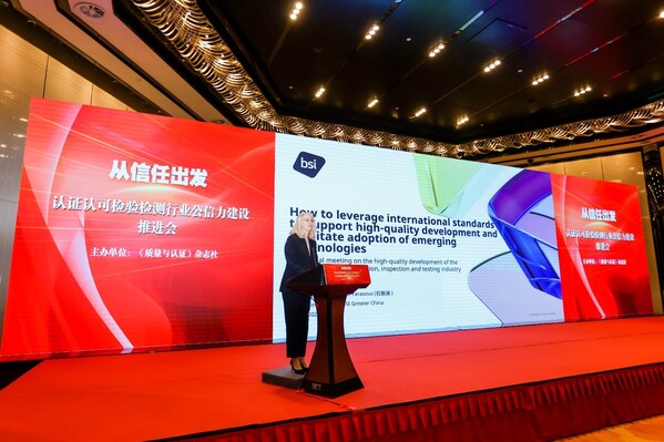 BSI大中华区董事总经理石慕澜(Dr. Tatiana Schmollack-Tarasova)代表BSI受邀参加,并发表题为【国际标准如何支撑高质量发展并促进新兴技术应用】的主题演讲。她从3个方面分享了国际标准的最新动态。